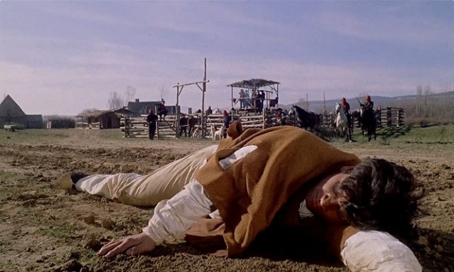 Dans Keoma, chaque personnage semble porter un archétype, et Caldwell n’échappe pas à cette lecture. Il peut être vu comme une incarnation de l’ordre malade, figé, incapable de s’adapter et prêt à tout pour subsister.