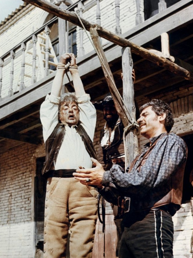 Dans "Il Mercenario", Curly se retrouve face à Sergei "Le Polack" Kowalski (interprété par Franco Nero) et Paco Roman (interprété par Tony Musante).