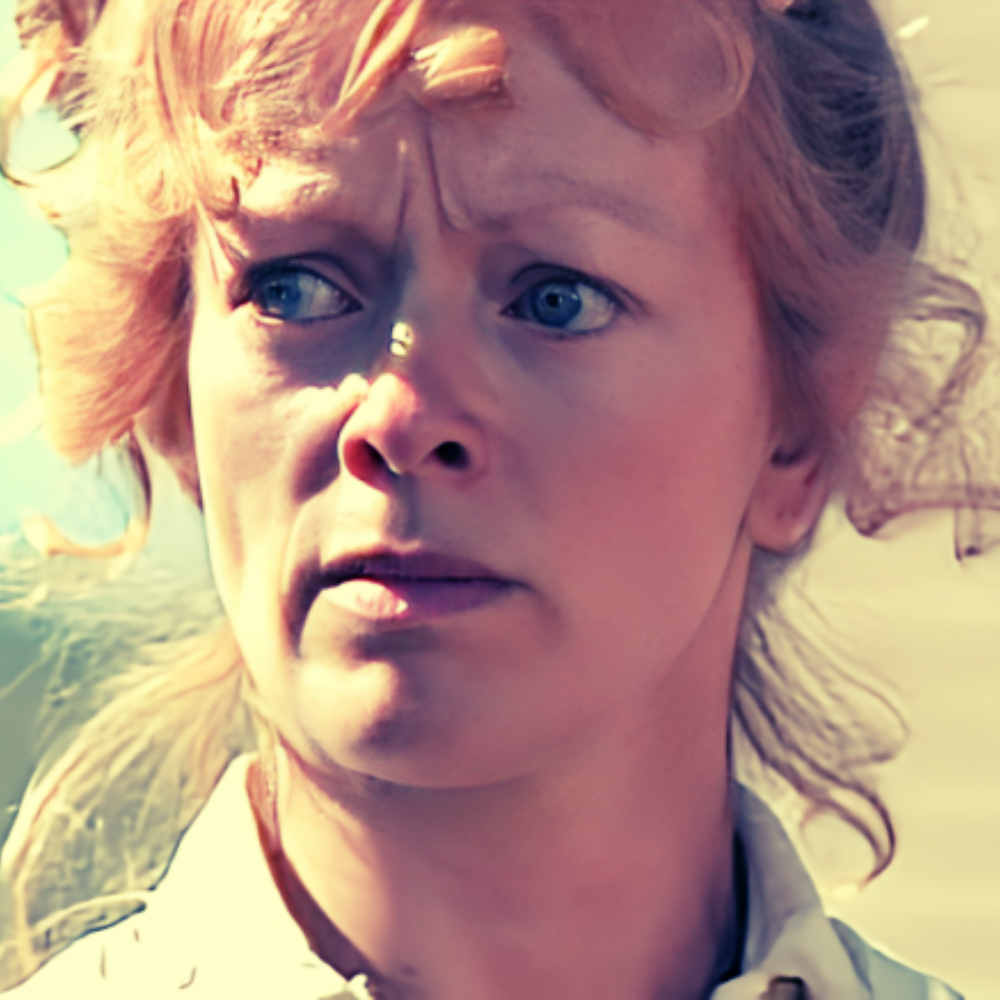 Elle manie le fusil avec assurance et incarne une figure de résilience et de pragmatisme.