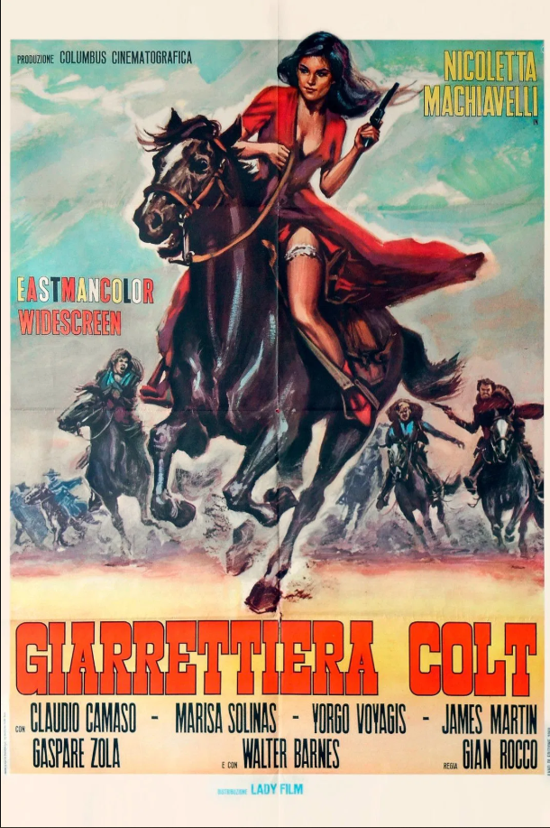 Dans Jarretière Colt (La colt è la mia legge, 1971), Nicoletta Machiavelli incarne une héroïne armée, rare exemple d’un western spaghetti centré sur une femme justicière.