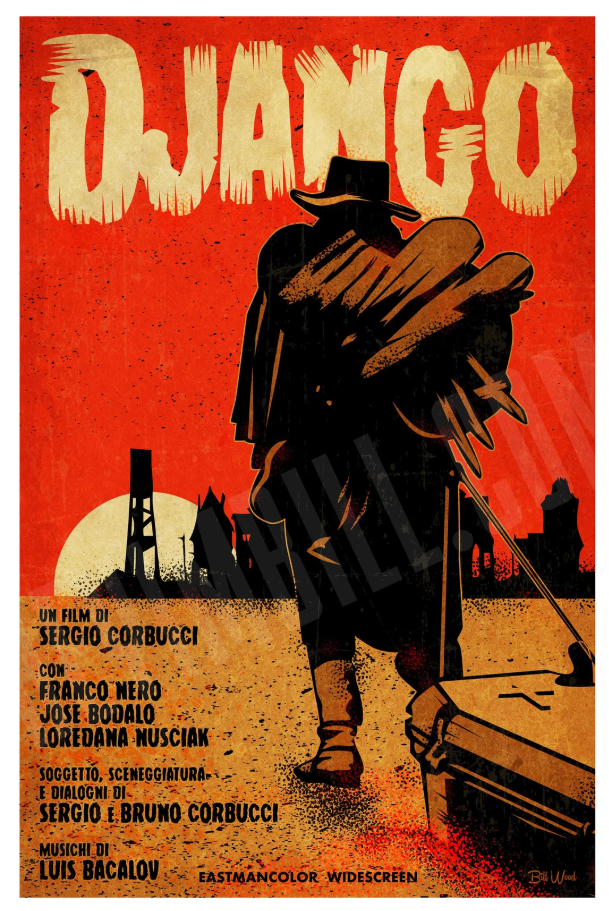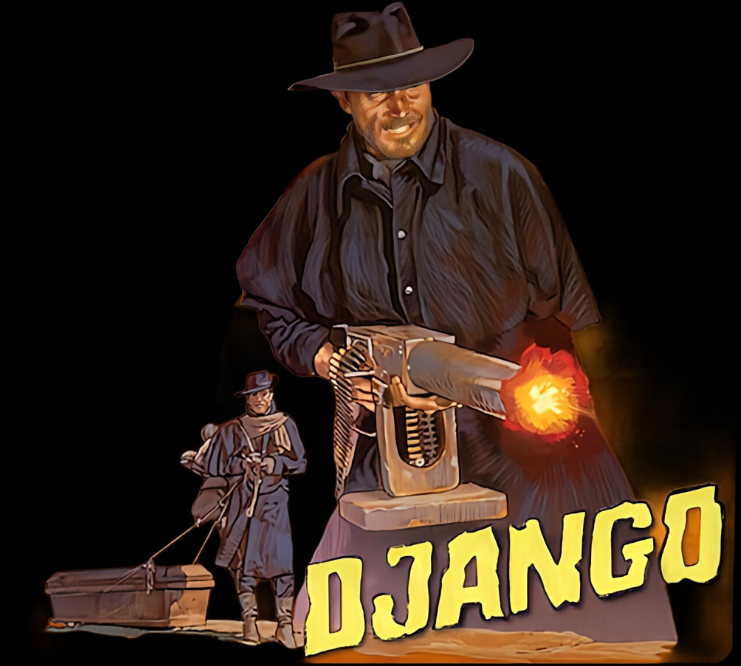 Le personnage de Django, traînant un cercueil derrière lui, est devenu une image emblématique du western spaghetti.