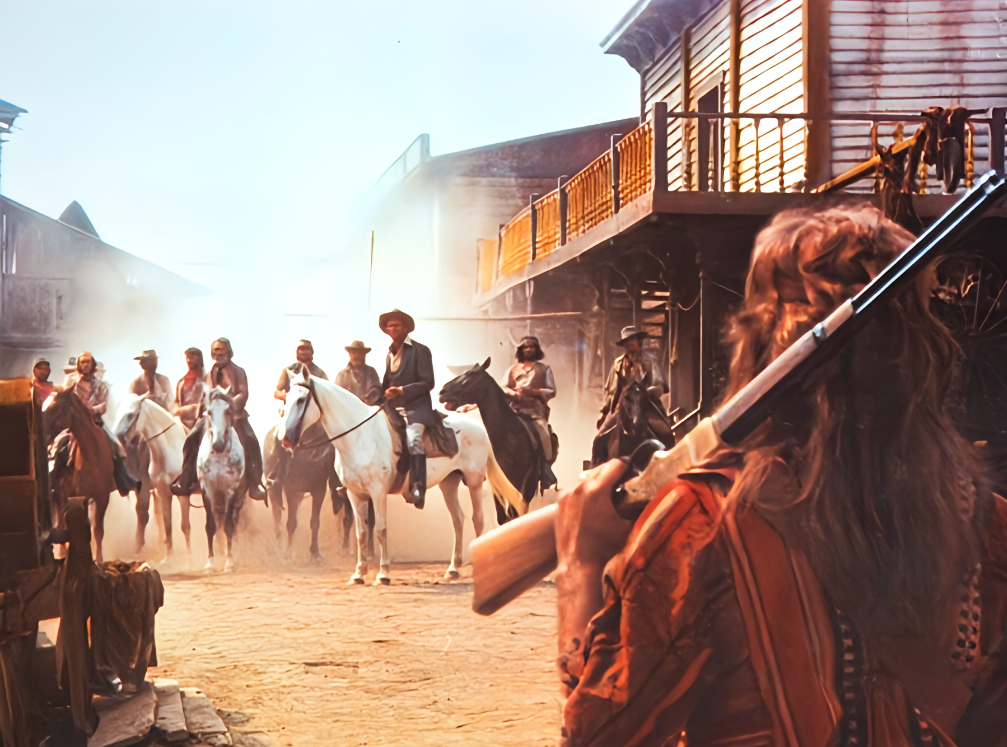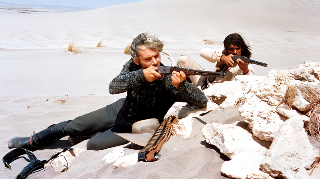 Dans Keoma, les scènes de combat sont magnifiées par des ralentis qui permettent au spectateur de ressentir chaque coup, chaque tir, chaque geste avec une intensité dramatique.