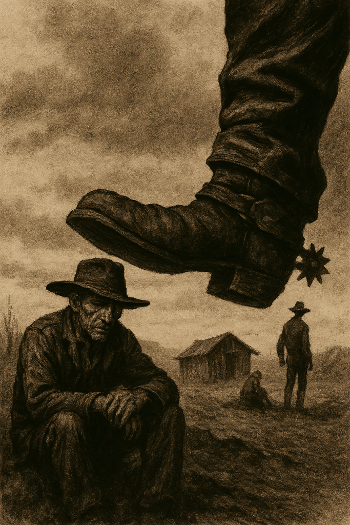 Dans Colorado, le personnage de Jonathan Corbett, un chasseur de primes au début implacable, prend conscience de la justice sociale à travers sa rencontre avec Cuchillo, un humble paysan mexicain.