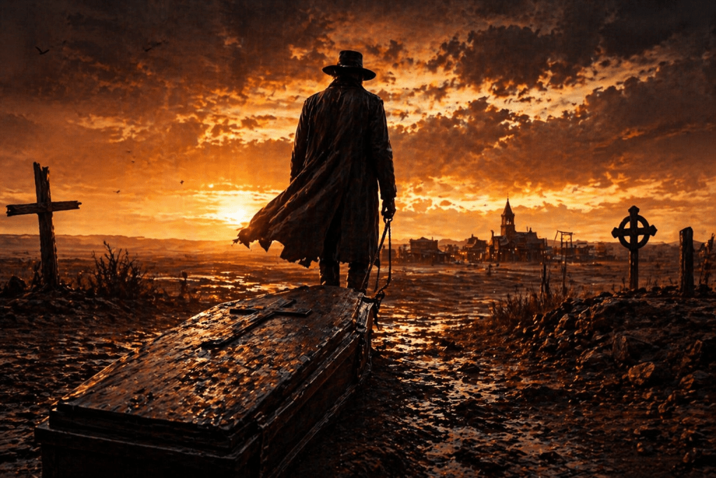 À l’intérieur de cette caisse mortuaire ? Un secret lourd, une mitrailleuse, une justice personnelle.
