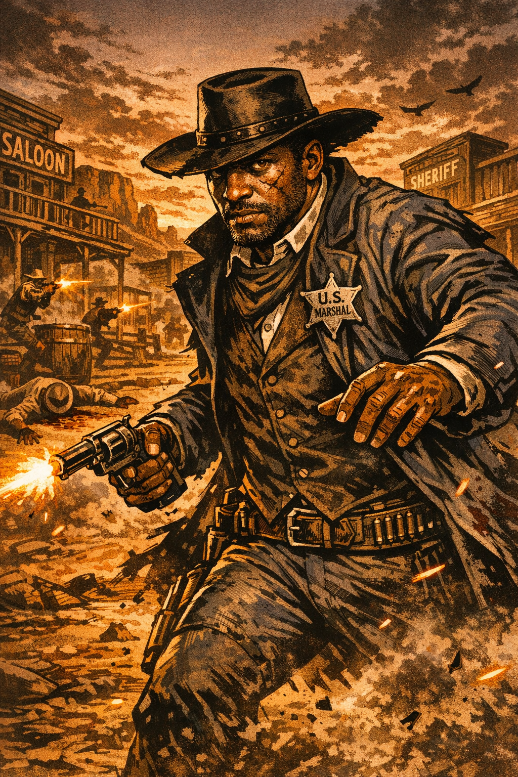 Avec Marshall Bass, ancien esclave devenu marshal, le récit bascule. L’Ouest n’est plus une promesse. C’est un champ de tensions.